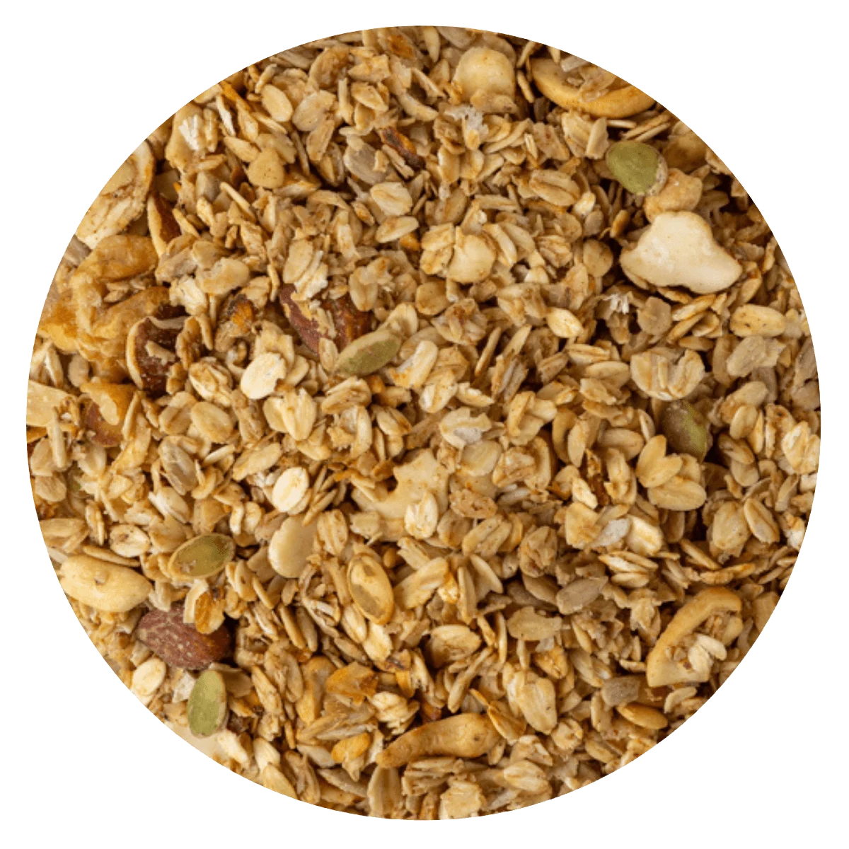 NUEZ – ALMENDRA ENTERA – CASTAÑA CAJU – MANI SIN SAL- COPO AVENA HORNEADA – SEMILLA GIRASOL – SEMILLA ZAPALLO – PASTA DATIL – ESENCIA VAINILLA – ACEITE COCO – CANELA